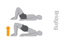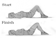 ท่านี้ทำในท่านอนหงายชันเข่า หลังจากนั้นค่อยๆ ยกก้นขึ้น ขณะยกขึ้นหลังต้องลอย ค้างไว้ 10-15 วินาที ทำอย่างน้อย 10 ครั้ง/เซต ทำ 2-3 เซต ท่านี้จะช่วยบริหารกล้ามเนื้อก้นและหลัง