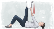 ท่านี้ทำในท่านอนหงาย โดยใช้ยางยืดหรือผ้าคล้องที่เท้า จากนั้นค่อยๆดึงผ้าหรือยางยืดขึ้นตรงๆ โดยดึงถึงในจุดท่าตึงเท่าที่ทนไหว ค้างไว้ 10-15 วินาที ทำ 10 ครั้ง/เซต ทำ 2-3 เซต ท่านี้ช่วยยืดกล้ามเนื้อหลัง