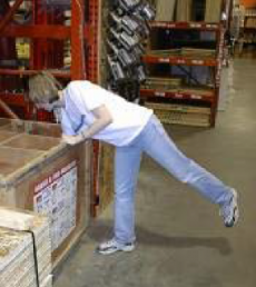 ถ้าของไม่หนักมาก ให้หยิบยกของในลักษณะแบบในภาพที่ 1 คือ โน้มตัวลง พร้อมกับยกขาขึ้นตรง 1 ข้าง ถ้าของที่ยกหนักมาก ให้ใช้วิธีการย่อก้น สะโพกลงคล้ายๆท่านั่งย่อง จากนั้นค่อยๆออกแรงที่หน้าขาและก้นในการยก แทนการใช้วิธีการก้มตัวยก แบบในภาพที่ 2