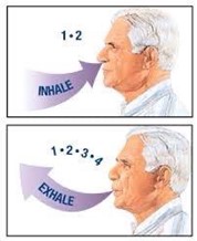 หายใจเข้าทางจมูกนับ 1-2 ในใจ หายใจ ออกช้าๆร่วมกับนับ 1-2-3-4 ในใจ ทำ 5-10 ครั้ง