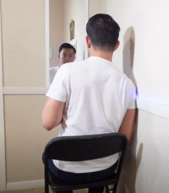 1.การฝึกนั่งลงน้ำหนัก โดยใช้ Visual feedback โดยใช้กระจก