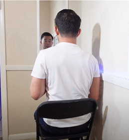 2.การฝึกยืนลงน้ำหนัก โดยใช้ Visual feedback โดยใช้กระจก